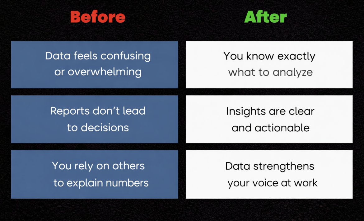 or a data skill you’ll use in every analysis, report & decision that matters at work.